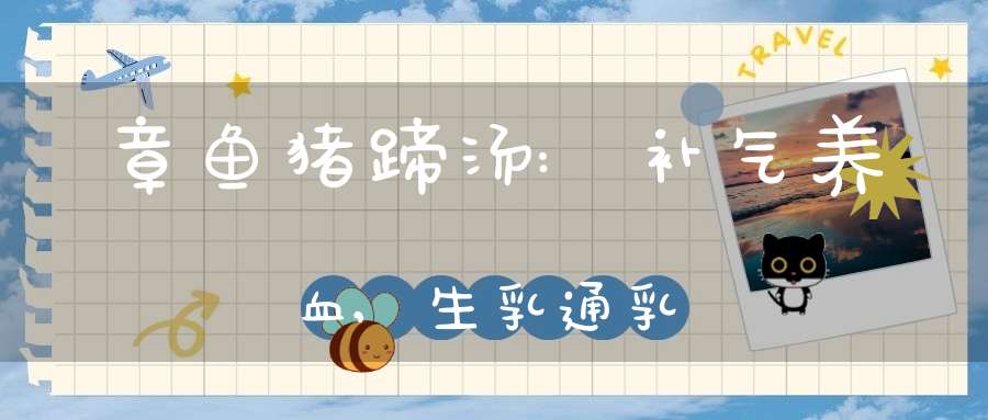 此汤能补气养血、生乳通乳。适宜于产后气血不足、乳汁稀少的食疗。章鱼能补血益气、催乳生肌,颇与墨鱼相似。《图经本草》说:“章鱼……似乌贼而差大,更珍好,食品所重。”用于气血虚弱、头昏体倦及产后乳汁不足。