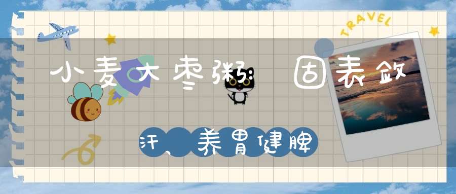 11、【小麦大枣粥】:浮小麦即小麦未成熟的颖果,以水淘之,浮起者为佳。其主要含多量淀粉及B族维生素等,性味甘凉,有止汗作用,用治疗自汗、盗汗,可免去患者过多损失津汁。糯米味甘,性微温,能补脾胃,益脾气。大枣益气和血,养心安神。三者合成此粥,可以起到固表敛汗,养胃健脾的功效。每日早晚1次温服。