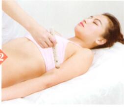3、将艾灸盒放天枢穴、大横穴上灸10〜15分钟。