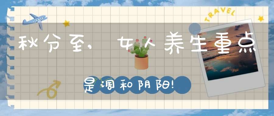 “秋分者,阴阳相半也,故昼夜均而寒暑平。”秋分的特点是昼夜平均,根据中医阴阳五行观点,在这个节气里,天地间的阴阳处于最均衡的状态,十分平和,是调和阴阳、调理内分泌失调的最佳时期!