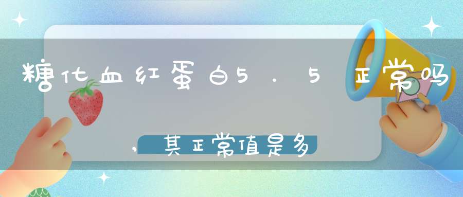 一般来讲,糖化血红蛋白是采用亲和色谱或者高效液相色谱来测定的,其正常值是4%到6%,所以糖化血红蛋白5.5是正常的,我们不必担心。当然这个参考值并不是固定的其参考值随着年龄的增大会有一定的增加,高脂血症标本也有可能会是结果偏高,所以,如果检测出糖化血红蛋白5.5是正常的。