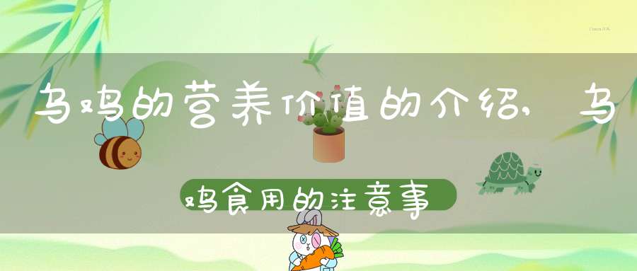 另外乌鸡性平,味甘,无毒,经常食用可以滋补肝肾,调经活血,乌鸡作为一种烹饪食材,肉质细嫩,味道鲜美,也是餐桌上深受欢迎的菜肴之一。