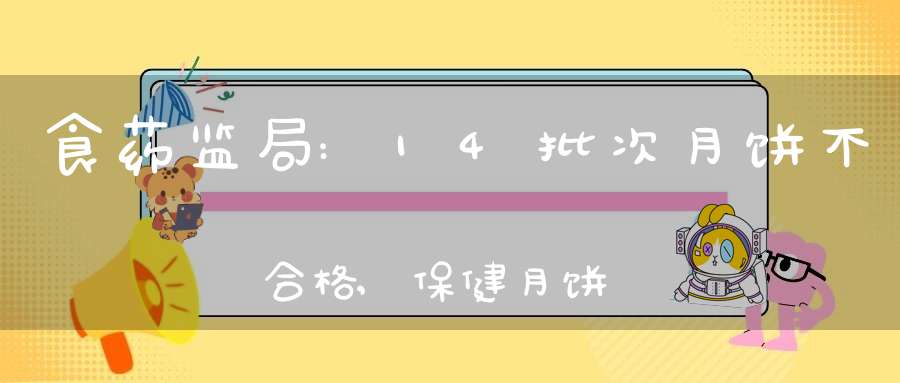 14批次月饼不合格!9月22日,国家食品药品监督管理总局公布近期抽检月饼、保健食品、茶叶及相关制品、薯类及膨化食品、豆类及豆制品、乳制品和蜂产品等7类食品共1184批次样品情况,其中中秋月饼不合格样品14批次。同时,食药监总局还发布中秋月饼消费警示,宣称“月饼类保健食品属虚假宣传,国家食品药品监管总局从未批准过保健类月饼。”