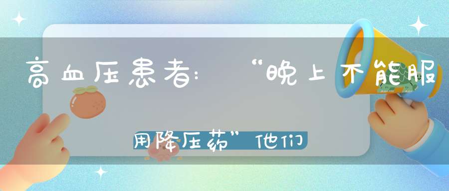不少高血压患者之所以在晚上不能服用降压药,是因为大部分人的血压有白天高、夜间低的特点,如果在晚上服用降压药,有可能加重低血压的症状,还可能增加患者发生急性心肌梗死、脑梗塞的风险。