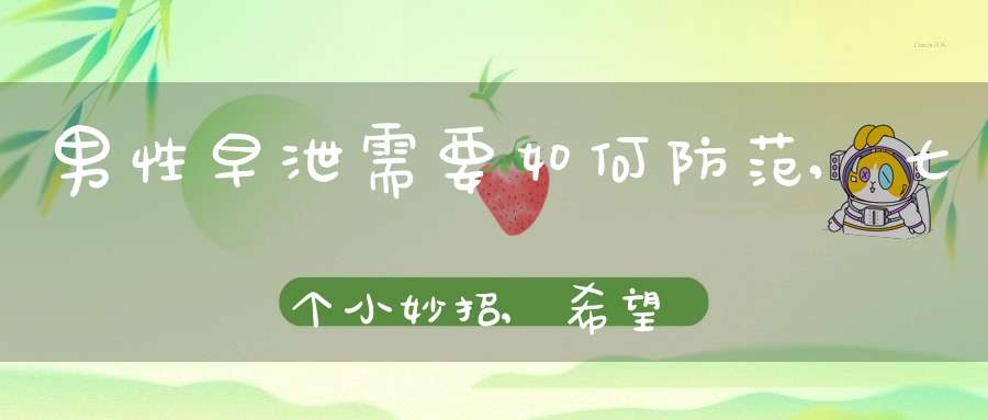 早泄危害巨大,但是不用着急,以下方法可以帮助大家缓解尴尬。