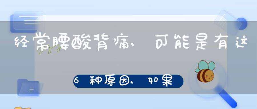 以上的这6个原因就是关于为什么会出现腰疼,在日常的生活当中,如果出现腰疼的情况而且比较频繁一定要及时的注意,及时的进行改善,避免身体受到更大的伤害,人类的腰部起着非常重要的作用。
