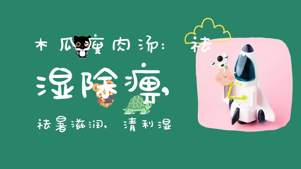 此款汤水具有健脾利水、祛湿除痹、祛暑滋润、清利湿热、润肠通便之功效;特别适宜湿疹、屈伸不利、水肿、脚气者饮用。