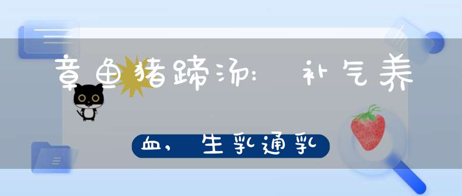 此汤能补气养血、生乳通乳。适宜于产后气血不足、乳汁稀少的食疗。章鱼能补血益气、催乳生肌,颇与墨鱼相似。《图经本草》说:“章鱼……似乌贼而差大,更珍好,食品所重。”用于气血虚弱、头昏体倦及产后乳汁不足。