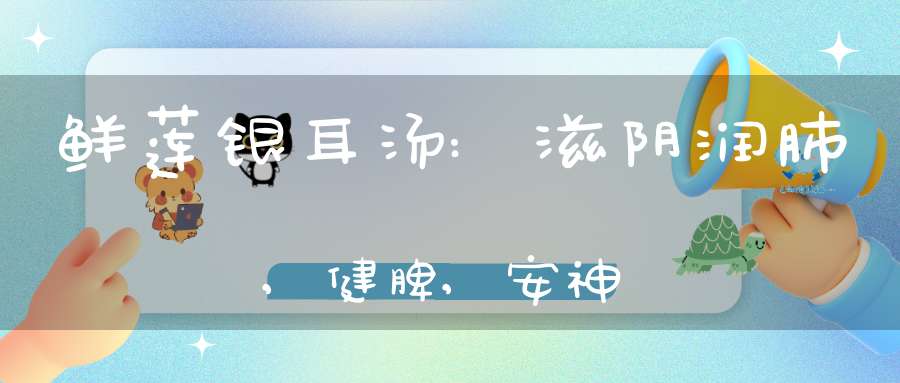 2、鲜莲银耳汤:干银耳10克,鲜莲子3O克,鸡清汤1500毫升。将发好的银耳放人盆内,加鸡清汤150毫升蒸1小时左右,再将银耳取出,鲜莲子剥去青皮和一层嫩白皮,切去两头,捅去芯,用水氽后,再用开水浸泡备用(鲜莲子要略带脆性,不要煮泡得很烂);烧开鸡清汤,加味精、料酒、盐、糖适量,入莲子、银耳即成。此汤具有滋阴润肺,健脾安神的功效。适用于心烦失眠,干咳痰少,口干咽痛,食少乏力等病症。健康人食用可消除疲劳,增进食欲,增强体质。