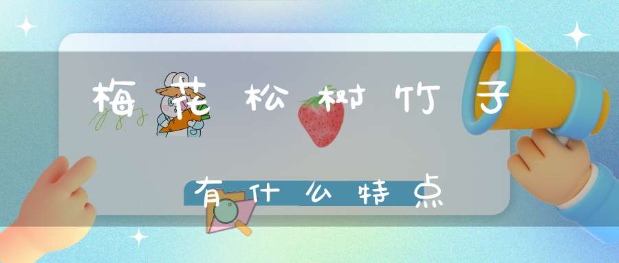 梅花特点:坚强 、高雅,总在寒冬开放,不畏惧严寒,一枝独秀,含孤傲清姿之美。比喻有骨气有气节、品德高尚、坚强、不屈不挠的人;松树特点:质朴、庄重的个性给人以祥和持重、静谧的感觉。它生机盎然,挺拔、坚毅,心无旁骛,巍然屹立、积极向上,追求阳光,松以其不惧风雪的傲然风骨,为世人展现出高风亮节;竹子特点:它表现着自强不息、顶天立地