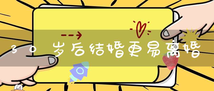 研究显示,离婚风险从青少年时期到30岁之前一直稳步下降,但是从30岁后不久又开始爬升。研究作者、美国犹他大学社会学家沃芬格说,“那些30岁后不久结婚的人比不到30岁结婚的人更容易离婚。”