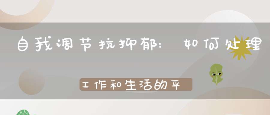 自我调节抗抑郁:如何处理工作和生活的平衡
