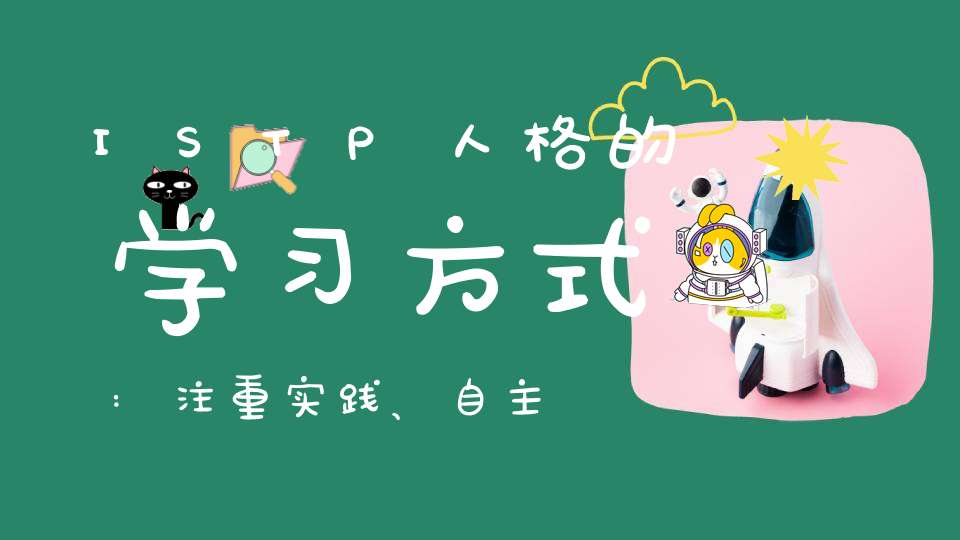 ISTP人格的学习方式也非常注重自主学习。他们喜欢通过自学来掌握知识,而不是仅仅听从老师的指导。他们喜欢独立思考,寻找问题的答案,并且在学习过程中会想尽一切办法来解决问题。因此,在学习过程中,ISTP人格的学习方式是自己寻找资料、自己探索问题,并且在学习中不断总结、不断修正自己的错误。