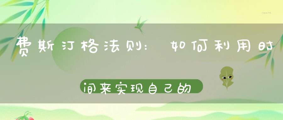 时间对于每个人来说都是公平的,每天只有24小时,不管你是亿万富翁还是普通人,都只能拥有这么多时间。然而,有些人似乎比其他人更能够利用时间,从而实现了更多的目标。费斯汀格法则就是一种方法,可以帮助你更好地利用时间,实现自己的目标。