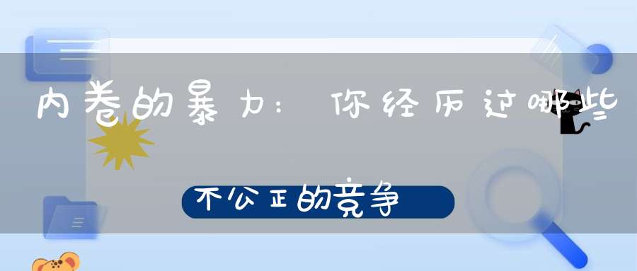 随着社会的不断发展,竞争已经成为了人们生活中不可避免的一部分。在工作、学习、生活等方面,人们都面临着各种各样的竞争。然而,当竞争过度,甚至演变为内卷时,就会给人们带来不公正的竞争,甚至是暴力。那么,你是否经历过哪些不公正的竞争呢?