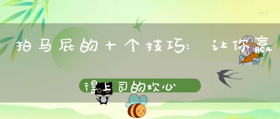 在职场中,与上司建立良好的关系是非常重要的。有时候,为了得到上司的认可和支持,我们不得不使用一些手段。其中,最常见的方法就是拍马屁。虽然拍马屁这种行为看起来有些不诚实,但是在适当的情况下,这确实是一种有效的方式来赢得上司的欢心。下面介绍十个拍马屁的技巧,帮助你在工作中更加得心应手。
