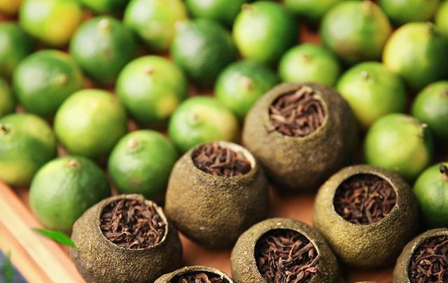“小青柑”是采用果皮未着色、生理未成熟时纯天然的新会柑(每年7月份-8月份采摘,芳香油含量高,柑味强烈。)和云南普洱茶为原料,在没有任何添加剂的情况下,经特殊工艺加工而成。