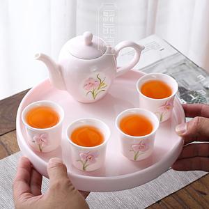 内挂白釉紫砂、白瓷、红釉瓷、暖色瓷的壶杯具、盖杯、盖碗或咖啡壶具。
