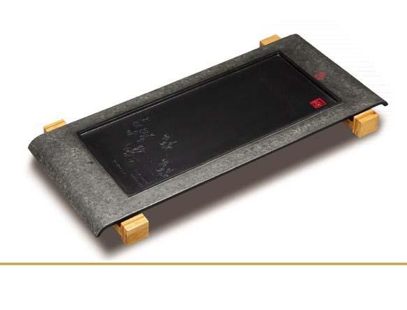 石茶盘不易吸水、不易变形,遇冷遇热都不会干裂褪色,不易沾茶垢,易清洗,排水也顺畅,而且外形美观,露高贵典雅之气。石质茶盘中也分多种质地,有玉石茶盘、砚石茶盘与九龙壁石茶盘。