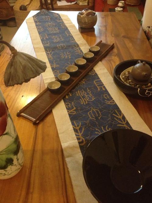 除了泡茶用到的茶器外,还需要准备的是桌布、茶旗和花瓶。别小看这三件物品,它们可是整个茶席的颜值担当,选对了会让你的茶席看起来非常高大上,选错了则让你的茶席看起来非常low。这个还是得看个人的眼光和搭配的技巧,不过最重要的还是让自己感觉舒服就好。