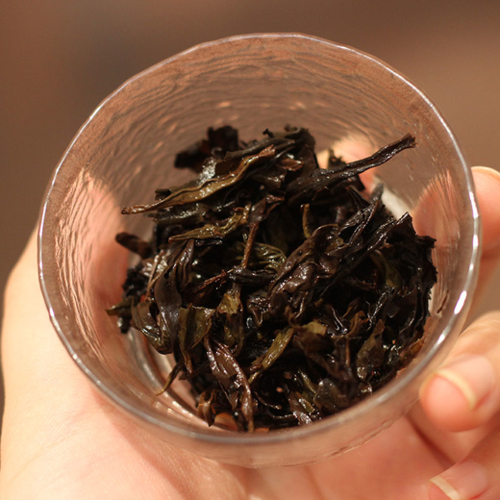 干茶紧结,呈乌褐色带砂光,有一种淡淡的板栗香。