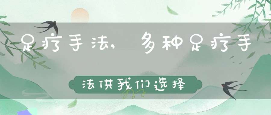 生活当中的足疗手法是有很多的,除了上面介绍的几种足疗手法之外,还是有很多的。所以我们完完全全可以根据自己的需要来选择适合自己的足疗手法来帮助自己拥有健康的身体。