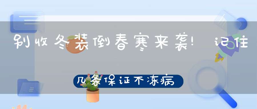 中国中医科学院养生保健专家委员会委员杜婕僡教授指出,现在正是倒春寒的时候,我们得添加衣物御寒,但同时还要注意,即使以后天气回暖了(气温升高到10~15℃),也得再捂上7天左右,体弱的孩子和老人还要视情况再多捂几天,这样身体才能适应。减得过快有可能会冻出病来。