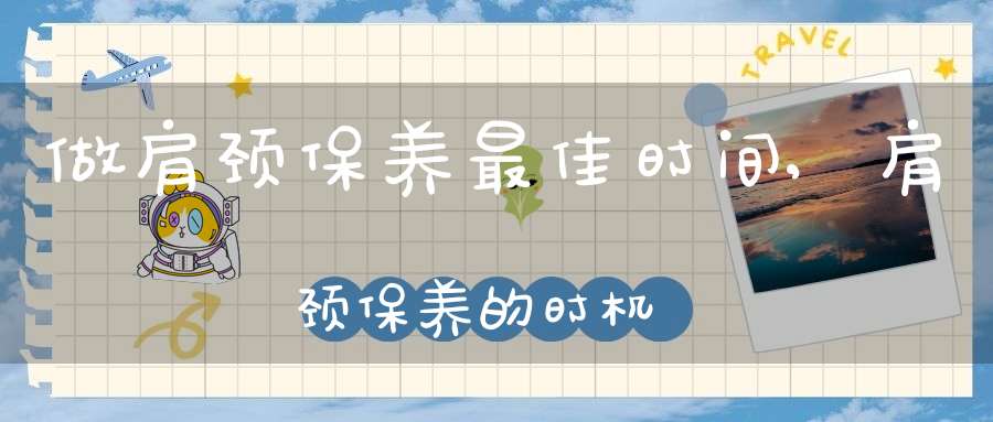 颈肩保养的最佳时间一定要进行合理的调整,可以通过使用颈肩保养的方法来有效的促进睡眠,颈肩护理的过程中,时间方面的选择也是非常重要的,应该一个星期保养一次,这样可以起到一定的护理颈部和肩部的作用,在进行颈肩护理的过程中,大概要40分钟左右的时间,最好应该到正规的中医院或是美容院做颈肩护理,预防颈椎病的产生。