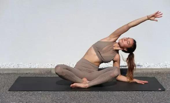 坐立侧伸展式可以拉伸身体两侧侧腰,疏通腋窝淋巴。