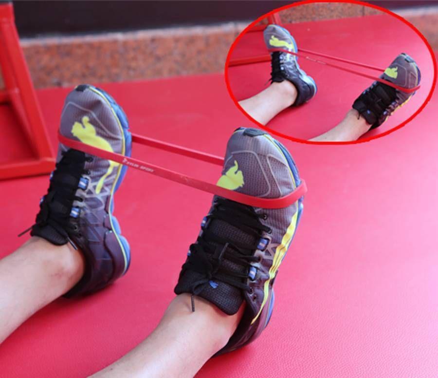 足背伸练习:脚尖向前,手拉住弹力绳,给脚踝向下的阻力,慢慢收回来,然后继续向前。