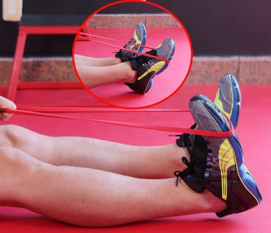 注意事项:练习时注意脚踝要持续受力,弹力绳也要保持紧绷的状态,每组10—15次,每次2—3组。
