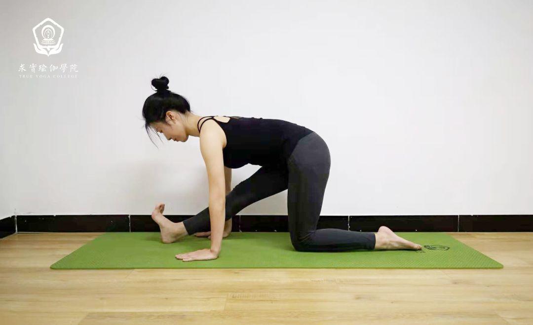 这个体式可以防止用腰部代偿,同时可以更好地找到大腿后侧的延展感。