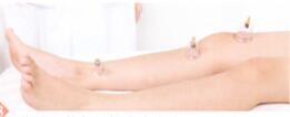 6、用拔罐器将气罐拔在足三里穴上,留罐10分钟。对侧以同样方法操作。