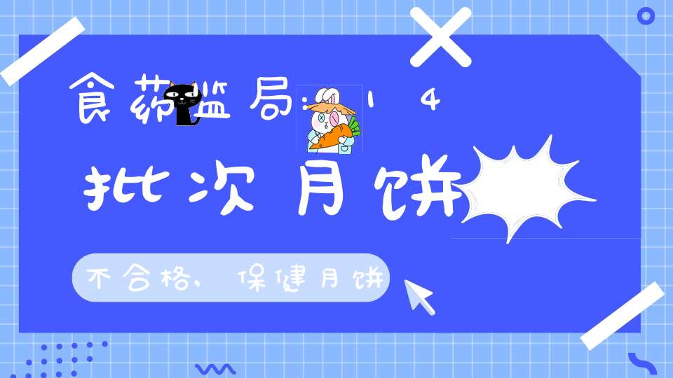 14批次月饼不合格!9月22日,国家食品药品监督管理总局公布近期抽检月饼、保健食品、茶叶及相关制品、薯类及膨化食品、豆类及豆制品、乳制品和蜂产品等7类食品共1184批次样品情况,其中中秋月饼不合格样品14批次。同时,食药监总局还发布中秋月饼消费警示,宣称“月饼类保健食品属虚假宣传,国家食品药品监管总局从未批准过保健类月饼。”