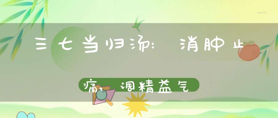 此汤能活血化淤、消肿止痛、调精益气。适用于骨折早期(伤后1〜2周)、骨折部位肿胀、疼痛明显、皮肤呈青紫淤斑。近年来,三七还用于治疗冠心病、高脂血症、眼前房出血、颞下颌关节功能紊乱综合征、运动过度综合征等。
