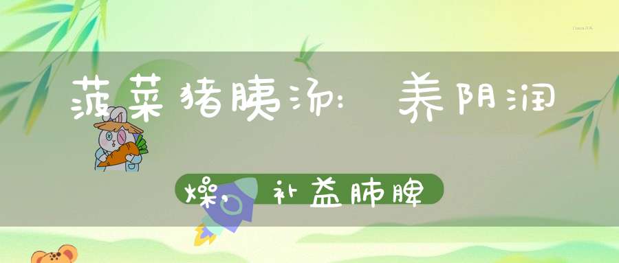 此汤能养阴润燥,补益肺脾。阴血亏虚之咽干口燥,面色萎黄。今用于I型糖尿病。菠菜具有滋阴养液,补血止血之功,是一种作用缓和的补血滋阴之品,对虚不受补者尤宜。