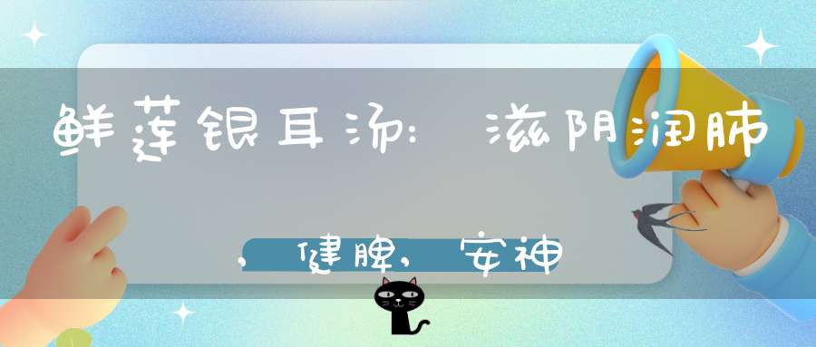 2、鲜莲银耳汤:干银耳10克,鲜莲子3O克,鸡清汤1500毫升。将发好的银耳放人盆内,加鸡清汤150毫升蒸1小时左右,再将银耳取出,鲜莲子剥去青皮和一层嫩白皮,切去两头,捅去芯,用水氽后,再用开水浸泡备用(鲜莲子要略带脆性,不要煮泡得很烂);烧开鸡清汤,加味精、料酒、盐、糖适量,入莲子、银耳即成。此汤具有滋阴润肺,健脾安神的功效。适用于心烦失眠,干咳痰少,口干咽痛,食少乏力等病症。健康人食用可消除疲劳,增进食欲,增强体质。