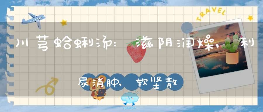 蛤蜊具有滋阴润燥、利尿消肿、软坚散结作 用。《本草经疏》中记载:“蛤蜊其性滋润而助津 液,故能润五脏、止消渴,开胃也。咸能入血软 坚,故妇人血块及老癖为寒热也。”此汤适用于 冠心病、心绞痛等症。