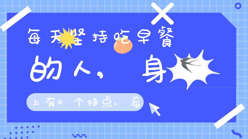 每天都坚持吃早餐,特点是抵抗力强,可以有足够的免疫能力对抗病原体入侵,不会动不动就生病。很多人忽略了吃早餐的重要性,却不知道早餐是提供能量,获取营养物质的关键,如果本身免疫系统功能下降,身体需要的蛋白质、维生素、矿物质或者微量元素没有满足需求,免疫系统会功能降低,抵抗力变得薄弱,某些病原体入侵后会引发疾病,受到疾病的影响生活质量降低,需要通过坚持吃早餐来保持免疫力正常。