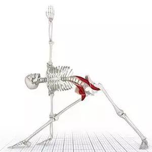 在整个三角式侧伸展中,完全放松的情况下,身体实际上会不自觉的倒向侧屈的一边,为了让整个体式左右平衡,后侧腿可以反向用力(想象你要倒的时候有人抱着你的腿),减少身体侧倾的趋势。