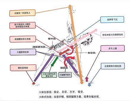 注意手无论放在哪里,都要去想象手像根一样深扎土地,而能量顺着手臂延展向对侧指尖。