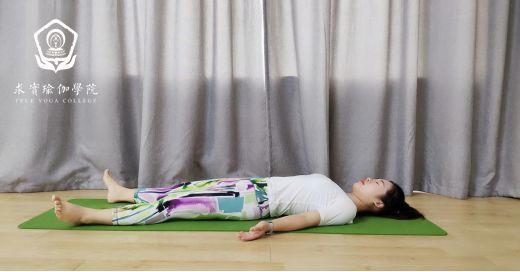 后背平躺在地面上,闭上双眼;双脚向身体两侧自然张开;双臂放于身体两侧,双手掌心向上;有意识地依次放松身体的各个部位,同时深呼吸。