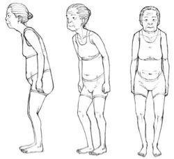 随着年纪的增长,肩膀会越来越往上怂,脖子变短,背变厚,所谓的“佝偻”就是这样形成的。