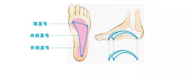 内侧足弓:弹性足弓,起缓冲震荡作用。